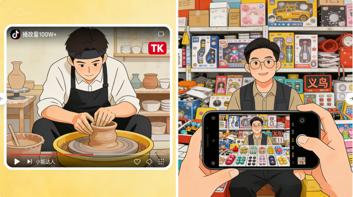 如果你会手工、懂烹饪、能跳舞、擅长教学,TK就是为你量身打造的舞台。在TK上,一条15秒的短视频就是你的动态简历,全球用户都是你的潜在客户。比如,你可以拍一段陶艺拉胚的治愈过程,配上字幕说明接受定制,海外的订单就会自动找上门。