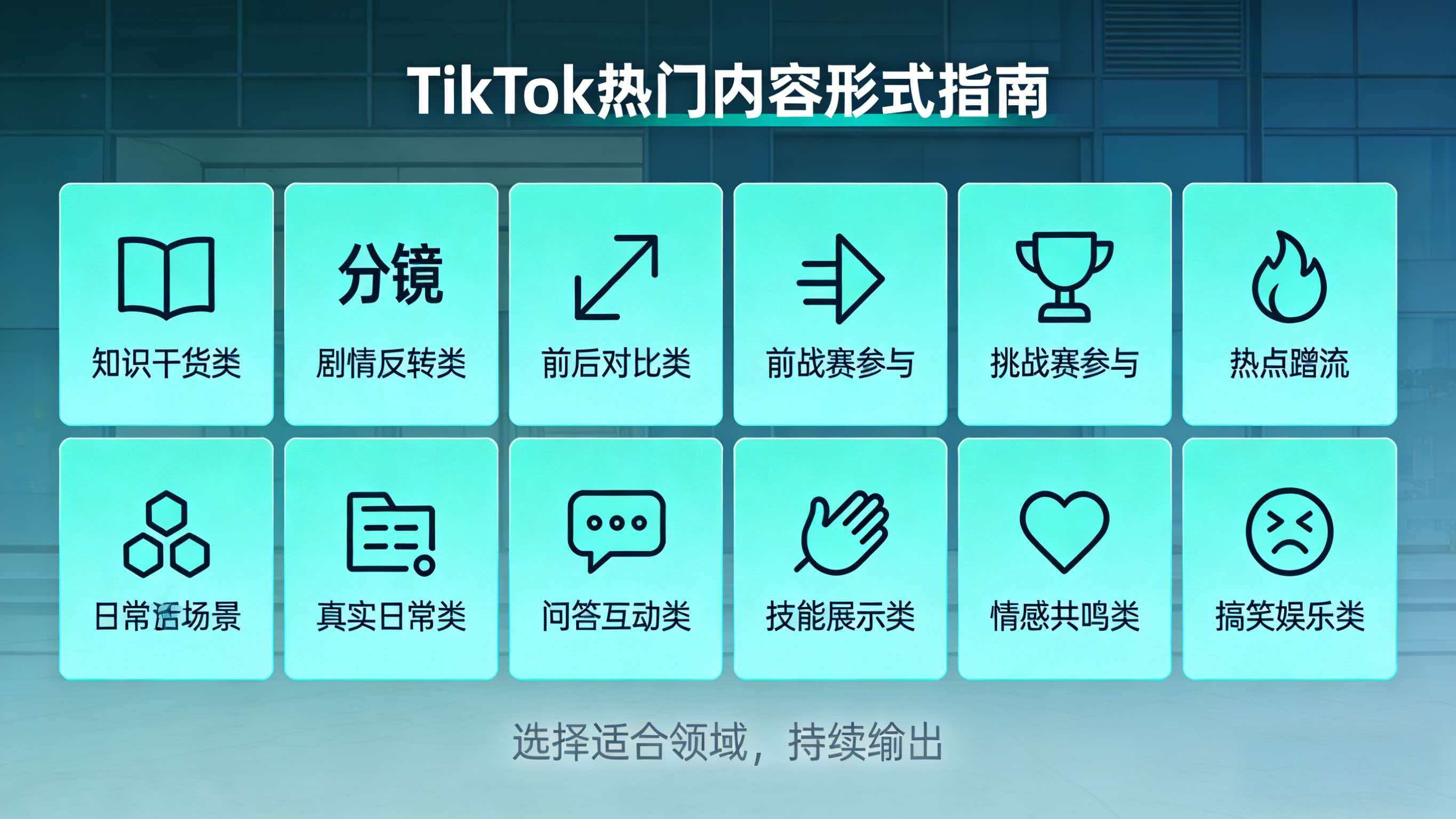 容易火的内容形式包括:知识干货类、剧情反转类、前后对比类、挑战赛参与、热点蹭流、真实日常类、问答互动类、技能展示类、情感共鸣类、搞笑娱乐类。选择适合自己领域的形式,持续输出。